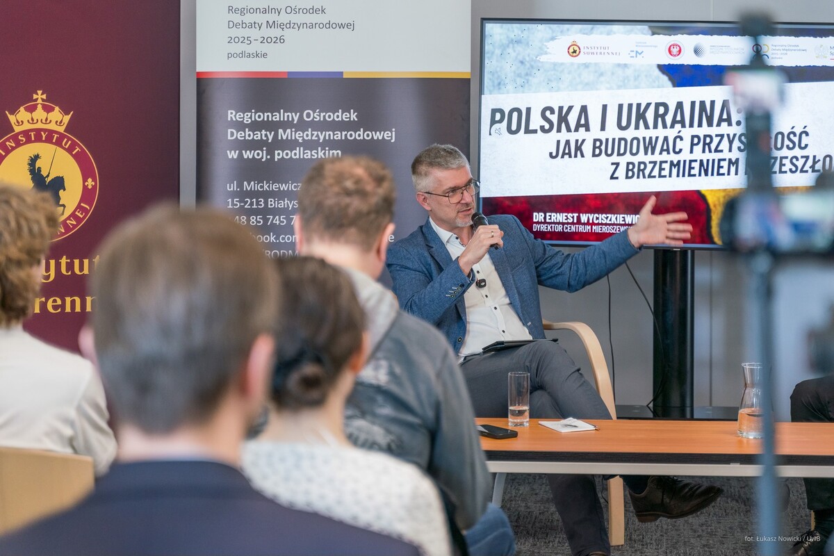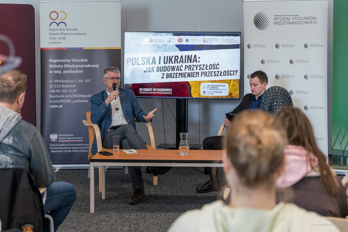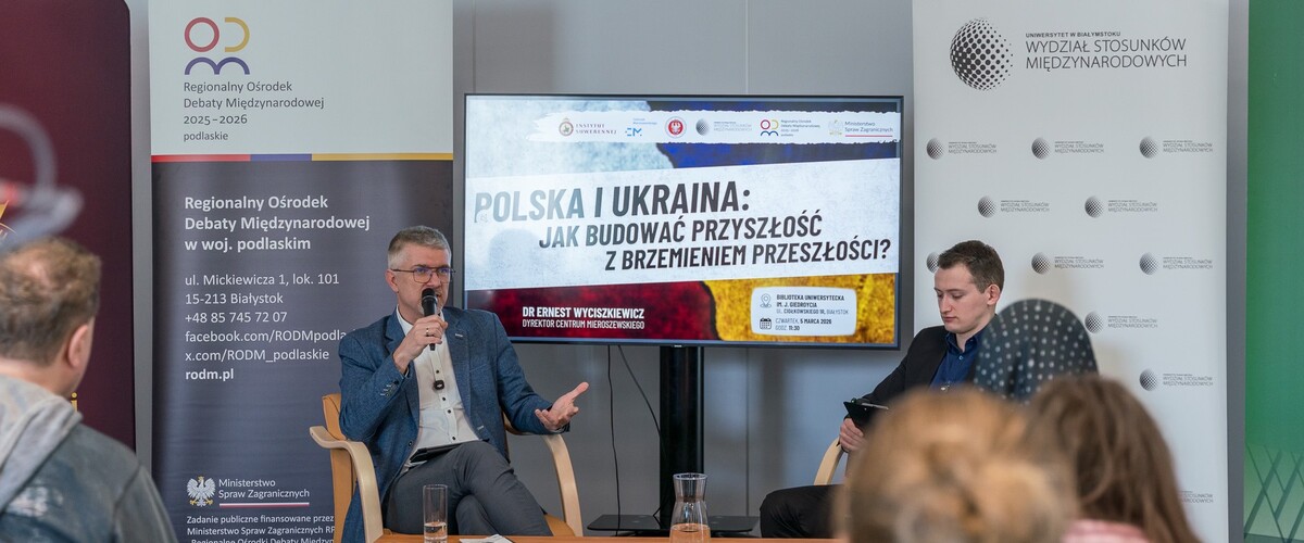 5 marca współorganizowaliśmy dyskusję pt. „Polska i Ukraina: jak budować przyszłość z brzemieniem przeszłości?”, która odbyła się w Bibliotece Uniwersyteckiej im. Jerzego Giedroycia w Białymstoku. Naszym gościem był dr Ernest Wyciszkiewicz z Centrum Mieroszewskiego. Dyskusję moderował Olgierd Dobrowolski, kryminolog i doktorant Uniwersytetu w Białymstoku.